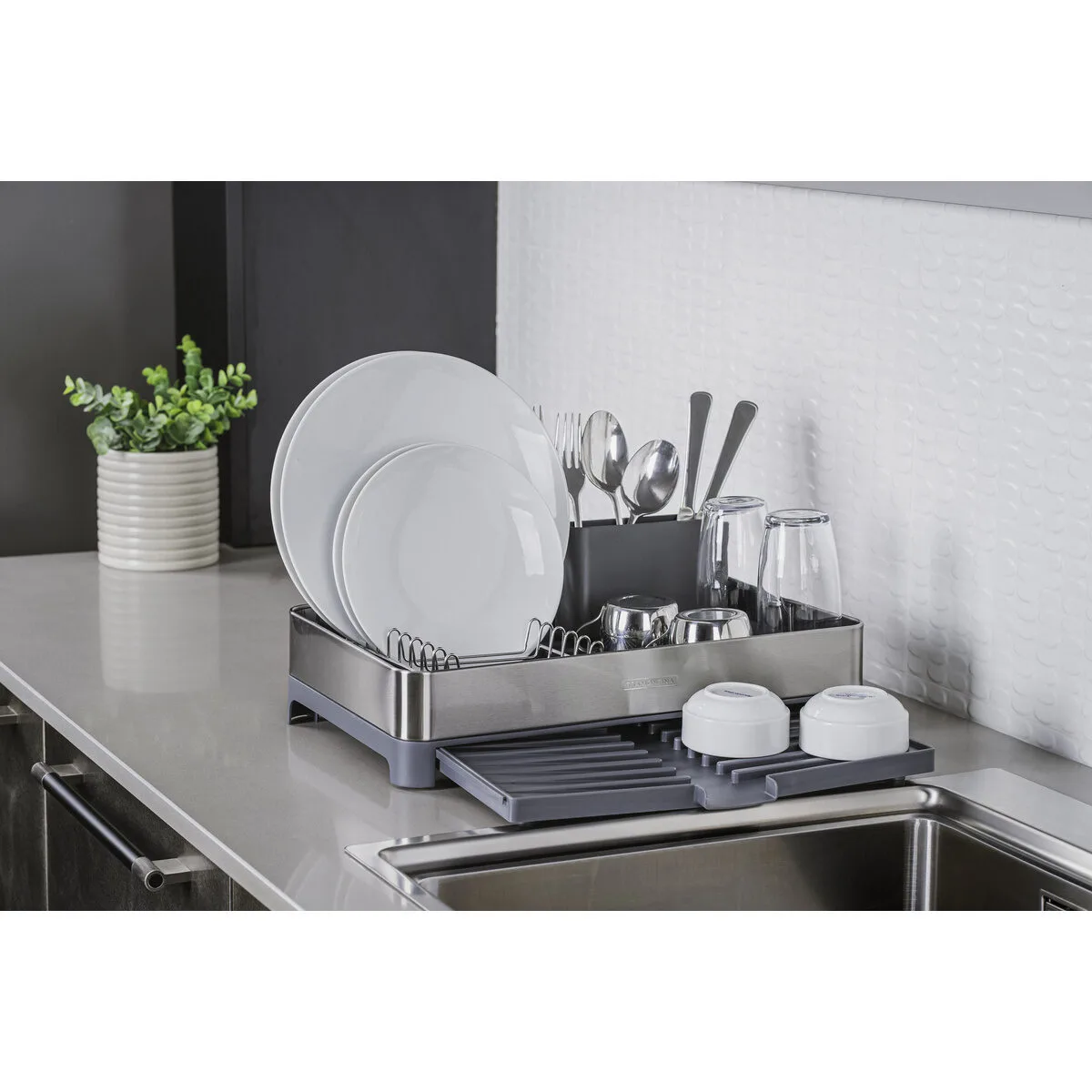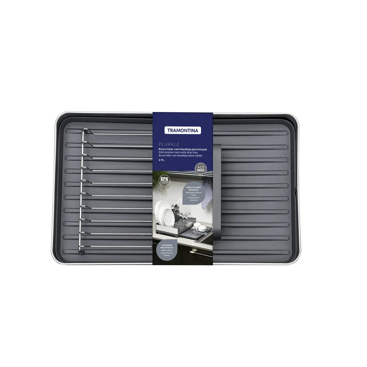 Para esos días ajetreados en los que no tienes mucho tiempo para las tareas del hogar, confía en el escurreplatos Tramontina Plurale de acero inoxidable y polipropileno con portacubiertos de grafito. Cuenta con un práctico portacubiertos de polipropileno que se adapta perfectamente a su superficie. Compacto pero con capacidad para la vajilla que necesitas, tiene capacidad para 9 platos, cubiertos y vasos, y el portavasos es extensible. Cuenta con asas que brindan mayor seguridad en el manejo y una inclinación que dirige el agua a la bandeja de goteo, haciendo que caiga directamente en el fregadero. ¡Un artículo práctico e indispensable para quienes siempre están en movimiento!