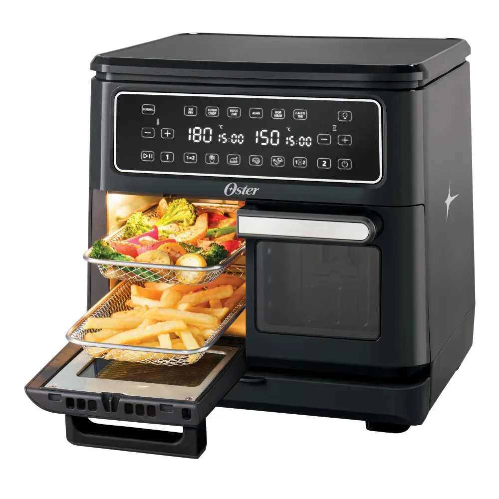 | Descripción: | FUNCIONES IGUALAR Y SINCRONIZAR: Con diseño modular para más formas de cocinar que nunca. Igualar cocina en ambas zonas de 5.5 L al mismo tiempo y temperatura. Sincronizar prepara dos recetas, de dos formas, listas al mismo tiempo 10 PROGRAMAS PARA MÁS FORMAS DE COCINAR: 4 programas automáticos para papas fritas, pollo, carne y vegetales. 6 funciones: Air Fry, Turbo Crisp, Rostizar, Asar, Hornear y Calentar RECUBRIMIENTO OSTER DIAMONDFORCE: Es 12 veces más duradero y resistente a rayaduras* y hasta 15 veces más fácil de limpiar* DISEÑO EXTRA GRANDE DE 11 L: Gran capacidad para mejores resultados. Cabe hasta un pollo entero FRITURAS CRUJIENTES: Cocina con 99.5% menos aceite** TODOS LOS ACCESORIOS PARA COCINAR: 2 canastas de cocción, 2 bandejas pequeñas de malla y 1 bandeja grande con recubrimiento antiadherente Oster DiamondForce |