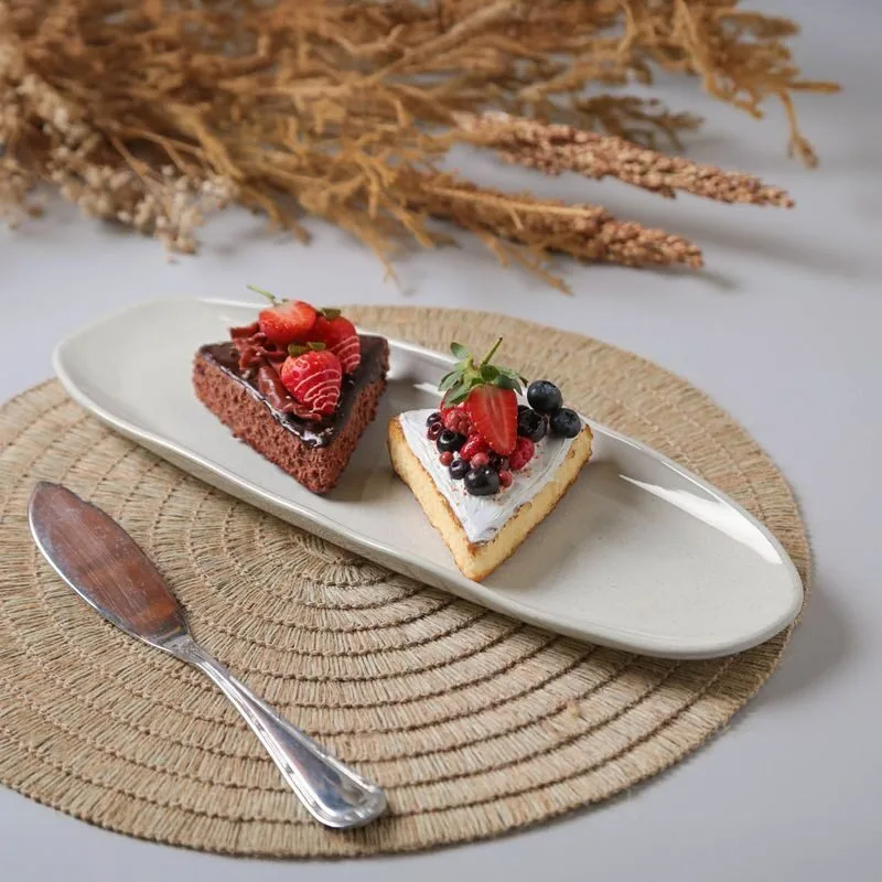 Juego de 4 platos o fuentes ovalados grandes y poco profundos para servir, diseño orgánico de Glam, 36 x 13 cm