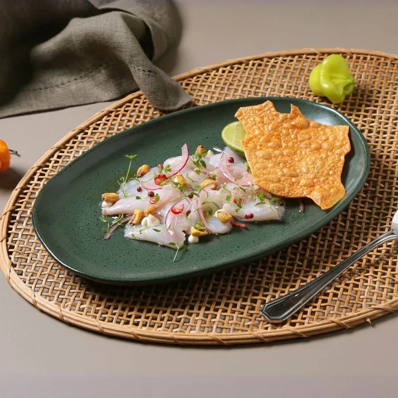 Juego de 4 platos ovalados Greenery para servir (30 x 20 cm)