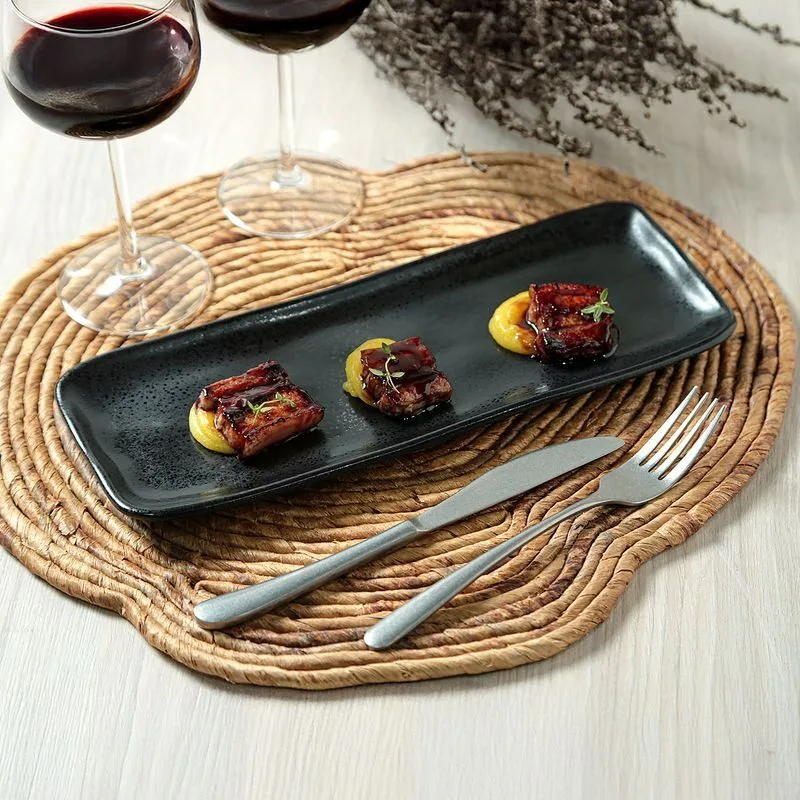 Juego de 4 platos rectangulares medianos para servir, diseño orgánico Eclipse, 33 x 13 cm
