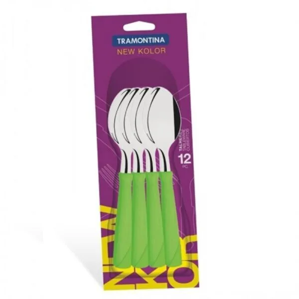 Juego de Cucharas de Mesa New Kolor con Hojas de Acero Inoxidable y Mangos de Polipropileno 12 Piezas