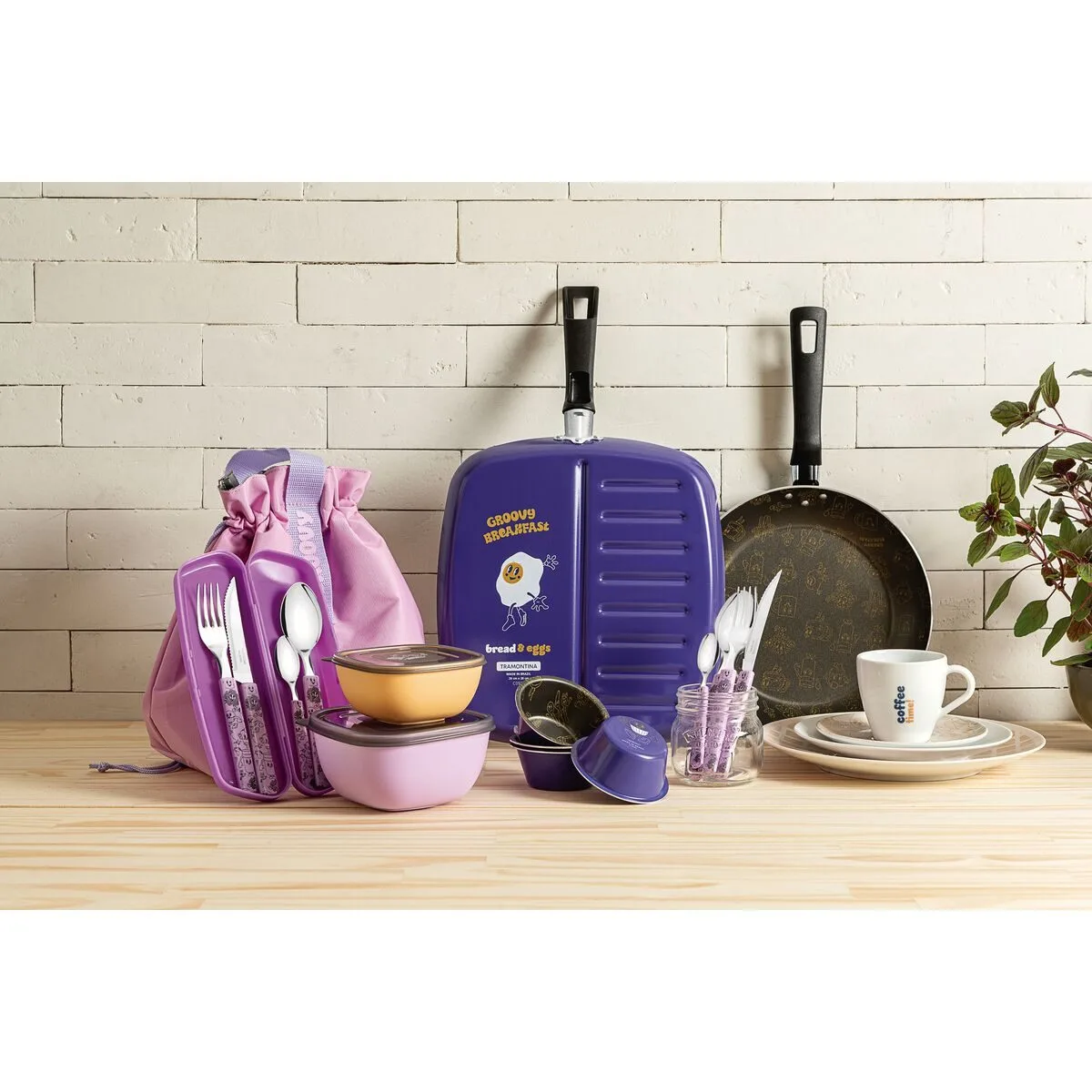 Lleva tus comidas contigo de forma práctica y elegante con el kit de lonchera Tramontina Groovy Breakfast de 8 piezas con bolsa térmica. Este kit es perfecto para quienes tienen una rutina ajetreada y necesitan llevar sus comidas a la universidad, al trabajo o de excursión. Lo más destacado de este kit es la bolsa térmica, que mantiene tus comidas frescas y sabrosas por más tiempo. Con capacidad para recipientes de 300 ml y 600 ml, puedes llevar una variedad de alimentos, desde ensaladas hasta platos calientes.