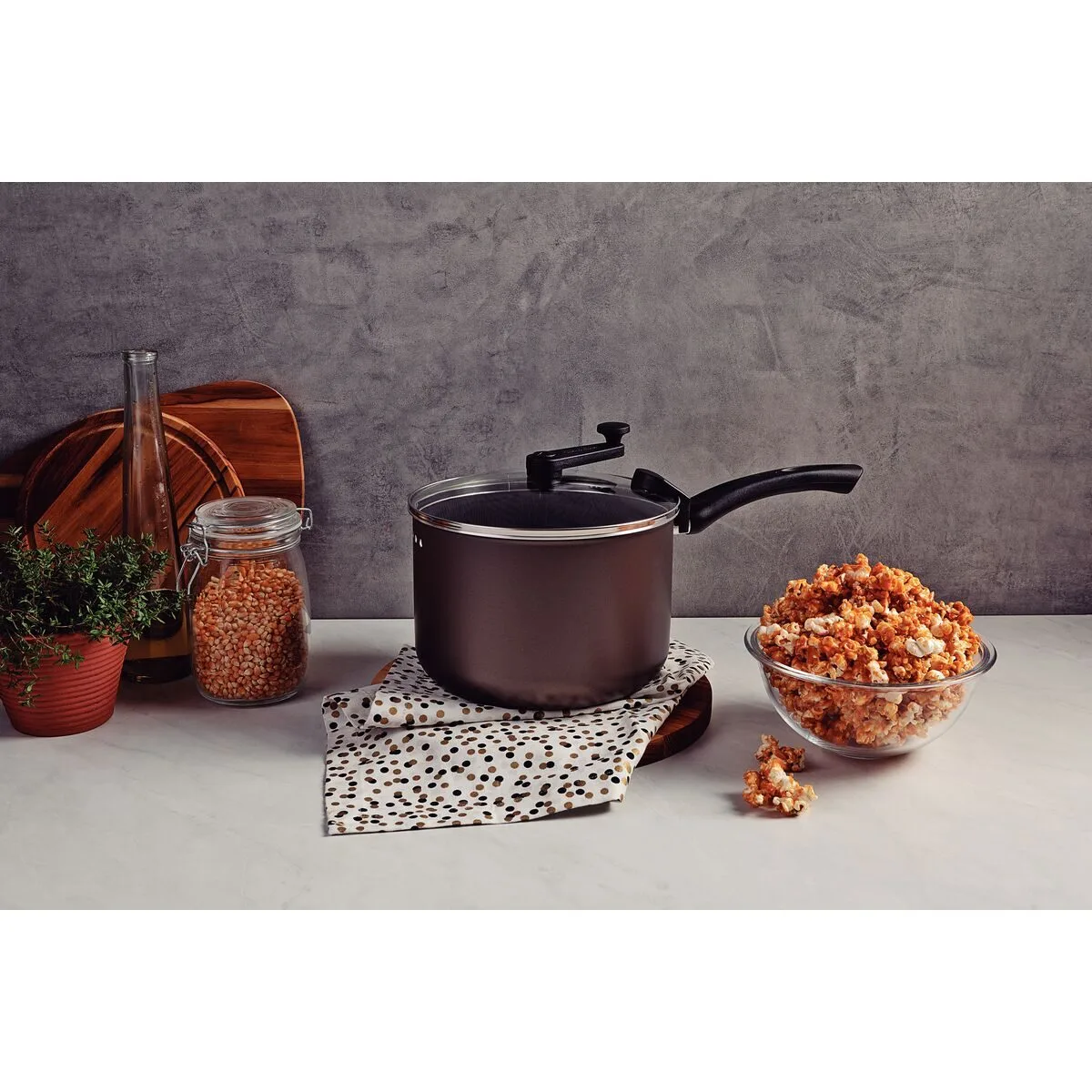 La tapa de vidrio templado con mecanismo de bloqueo que se ajusta al asa proporciona mayor estabilidad durante el uso y no gira durante la cocción. El