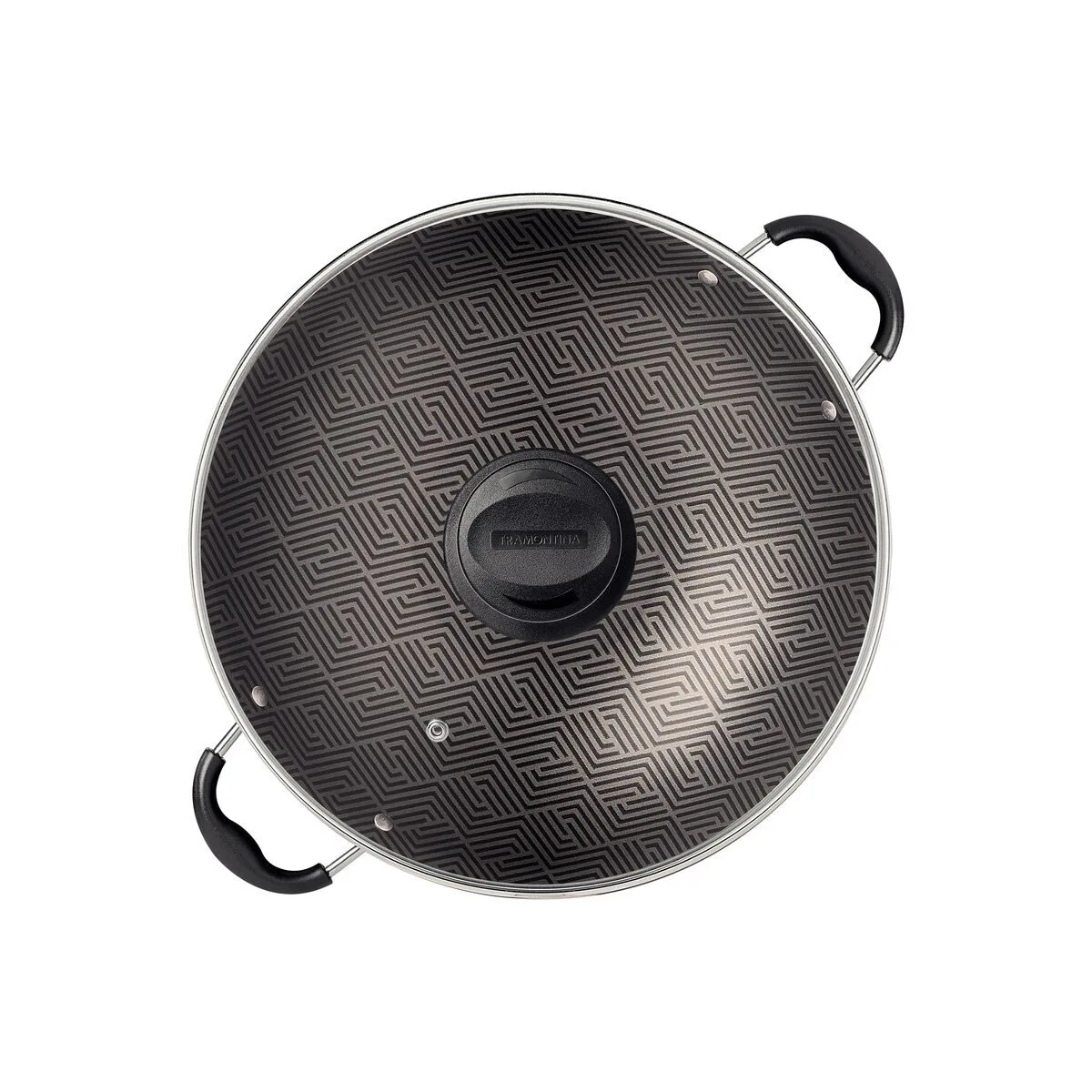 Tapa de vidrio templado con salida de vapor y borde de acero inoxidable.