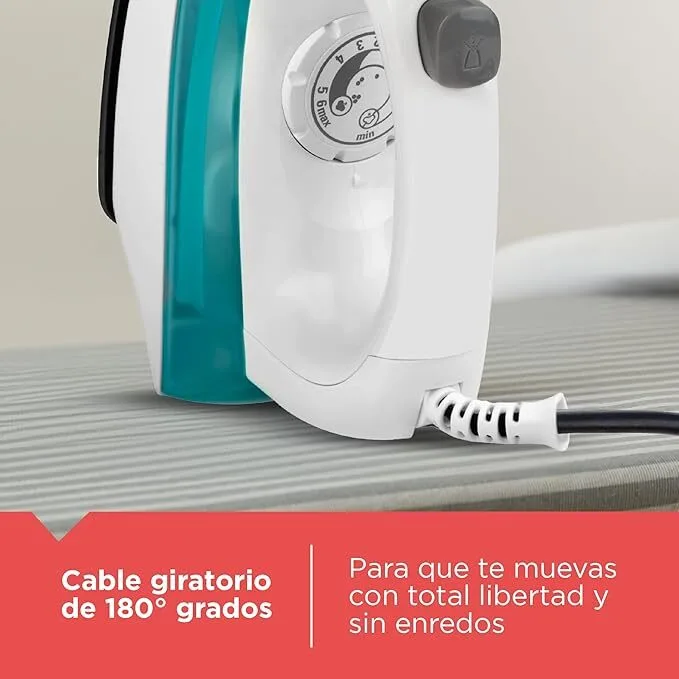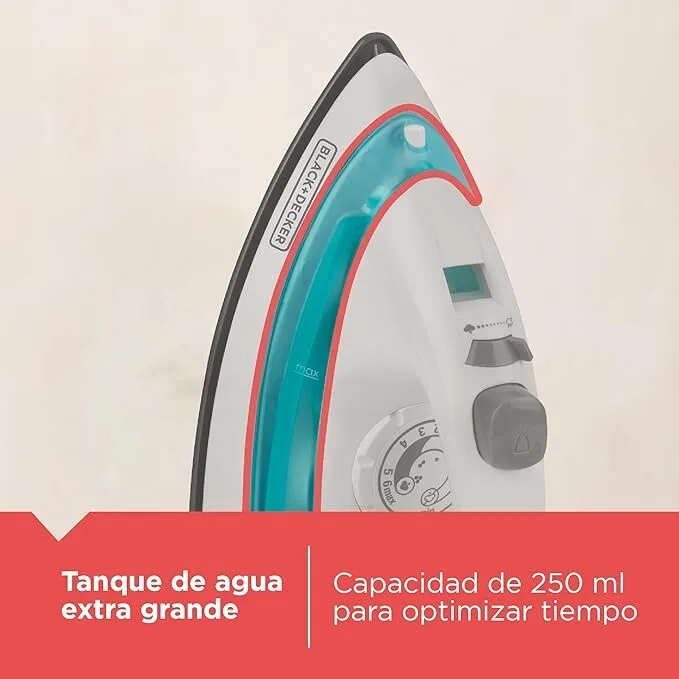 Potencia eficiente de 1100 watts para un rendimiento confiable Tanque de agua extra grande de 250 ml, menos recargas y más planchado Selector de tejidos con 6 ajustes de temperatura, cuida cada tipo de tela