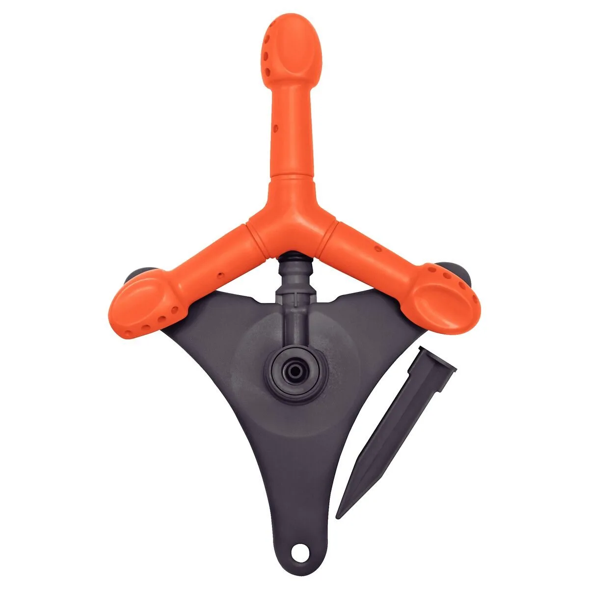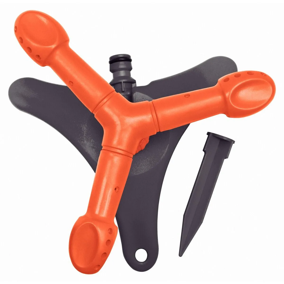 Equipado con 3 brazos giratorios de plástico con terminales ajustables para dirigir el chorro de agua.