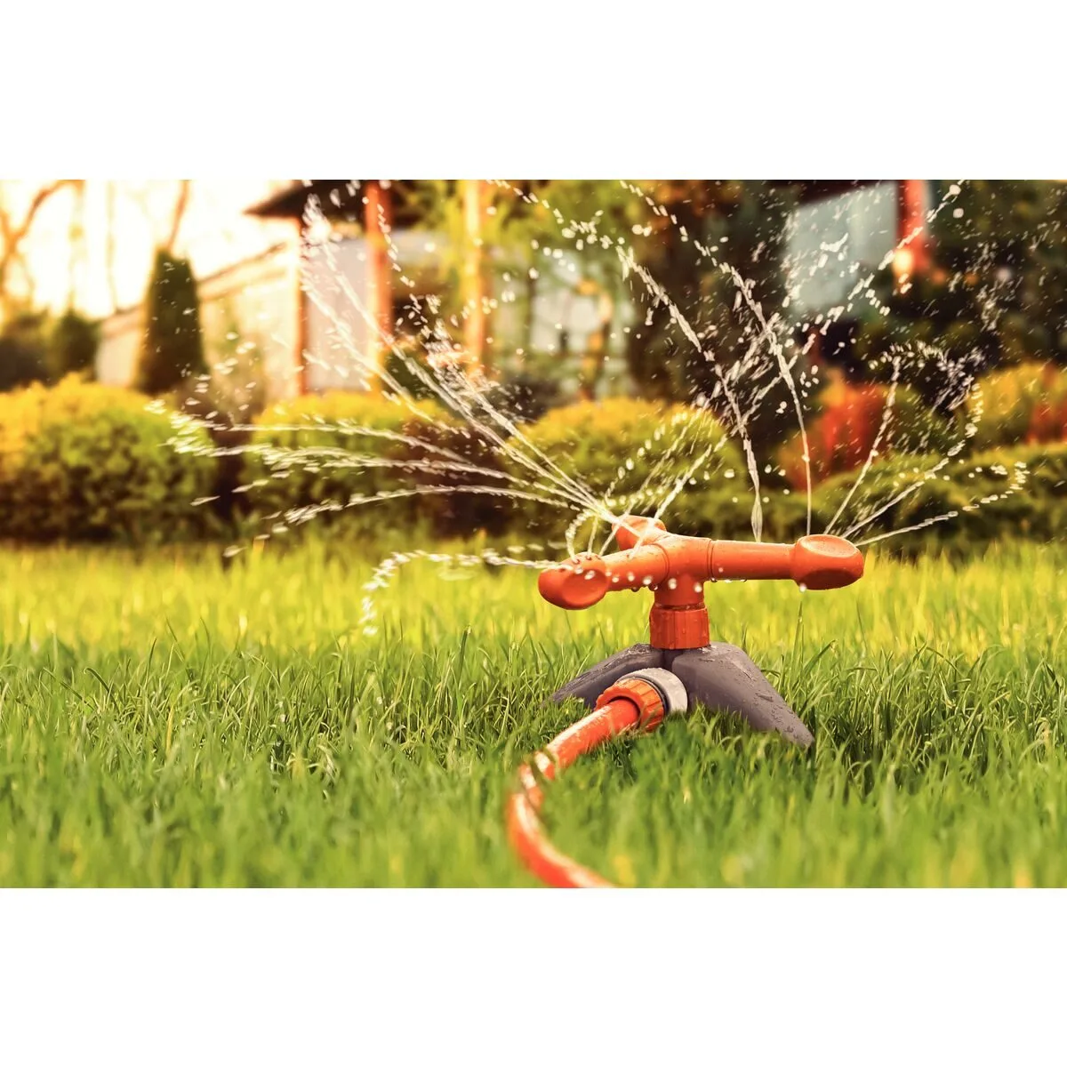 El aspersor se utiliza para regar jardines, césped o huertos domésticos.
